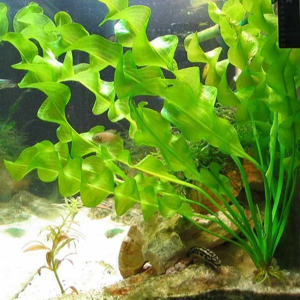 O Aponogeton Ulvaceus é uma planta de folhagem exuberante e ondulada que cria um efeito visual encantador no aquário, ajudando na oxigenação e purificação da água para um ambiente aquático saudável.