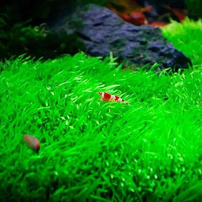 Ela purifica a água, cria um habitat seguro para peixes e camarões e equilibra o ecossistema do aquário com sua capacidade de capturar micro-organismos.