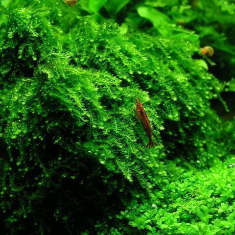 Melhora a saúde do aquário ao absorver nitratos e criar um ambiente ideal para camarões e peixes, atuando como filtro natural e promovendo estabilidade biológica.